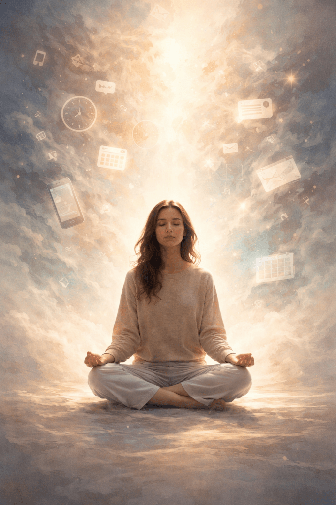 It lives in notifications, expectations, timelines, and comparisons. It shows up in the subtle pressure to keep up, to prove ourselves, to perform even when no one explicitly asked us to. It convinces us that rest must be earned, that peace is a reward for future success, and that stillness is a luxury we can’t afford.