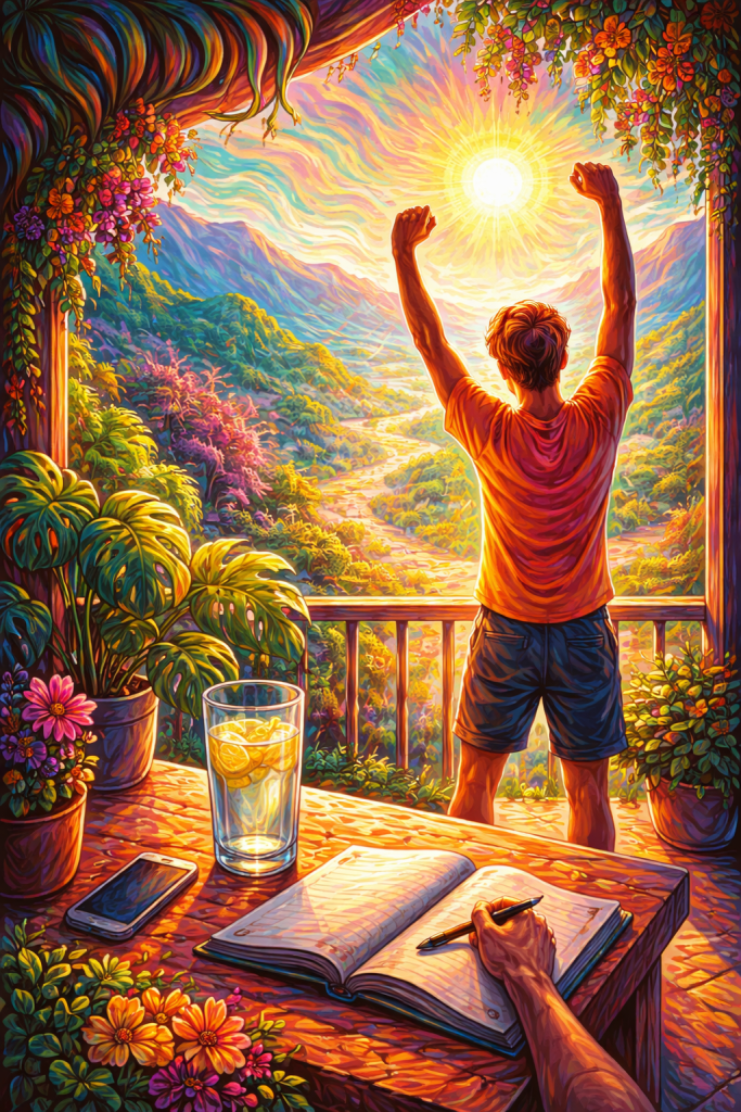 It sounds simple, but it’s one of the most powerful habits you can develop. Most people wake up and immediately check their phones—emails, texts, news, and social media notifications flood the brain within minutes of opening your eyes. This constant stream of information triggers stress and decision fatigue before your day even begins.